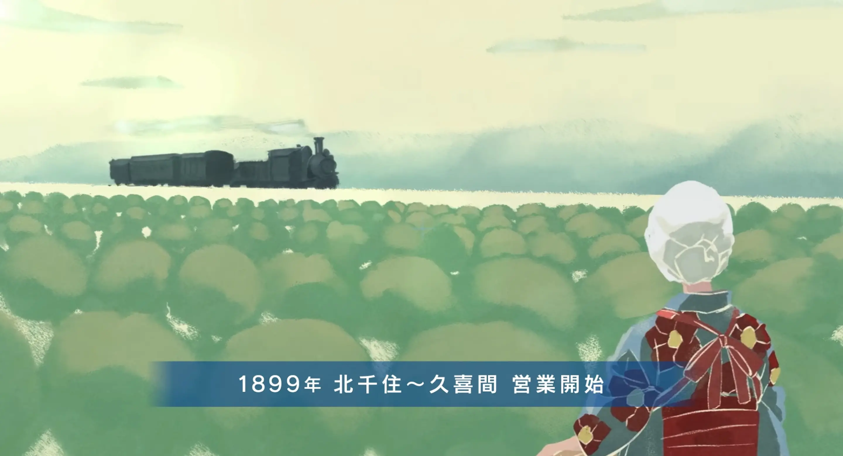 制作チームがこだわったのは、各時代の主人公の「瞳」を通じて時代を転換させる演出です。スカイツリーから見える東京の眺望、桑畑を抜けて走るSLの姿、旅の途中で見た日光の景色、通勤の車両から眺める町並み。それらを見つめる瞳の表情で、鉄道がもたらした新しい景色に心を動かされる、まさにその瞬間を描いています。瞳をブリッジにして時代をつなぐことで、東武鉄道と沿線の人々が歩んできた125年以上の時間を、一つの物語としてまとめています。