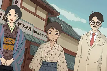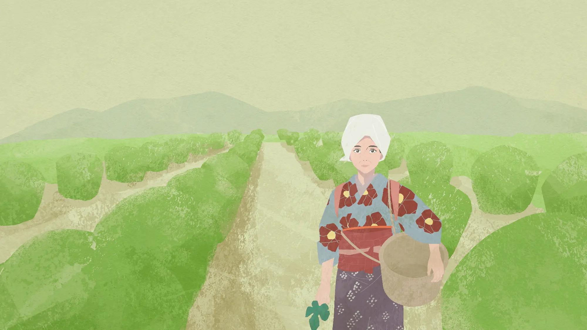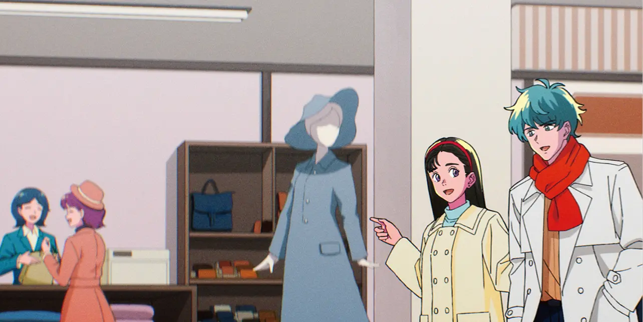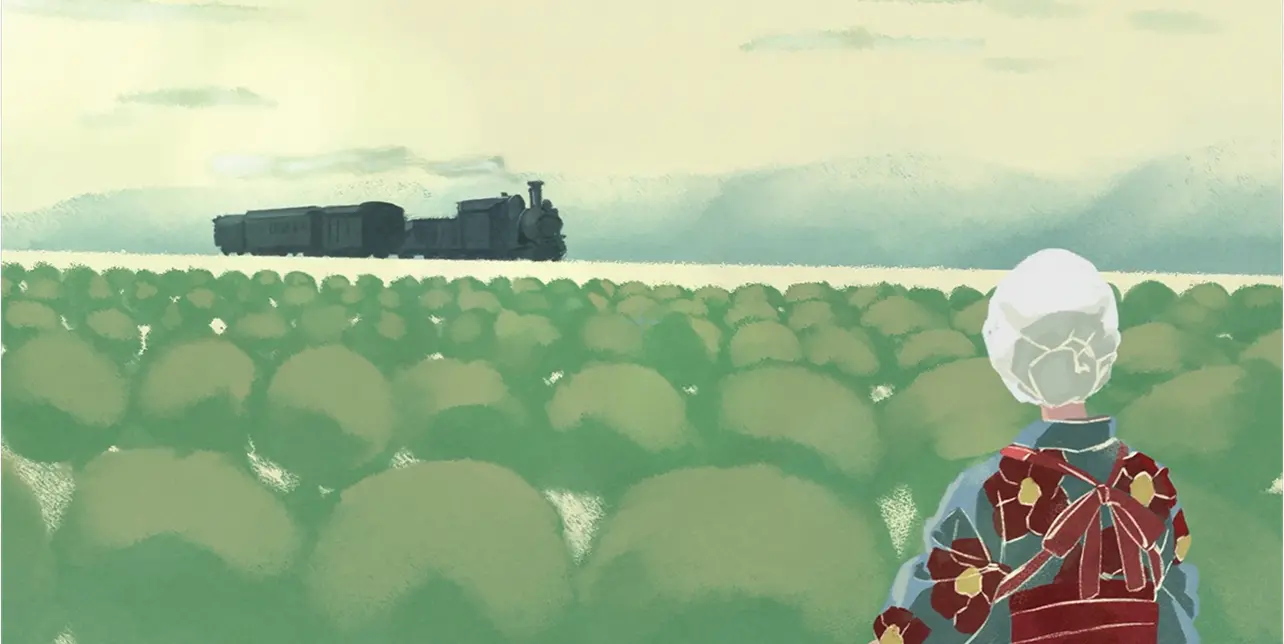 明治期は、水彩のような柔らかい線で情報の解像度がまだ粗い時代を表現。養蚕業がさかんだったことから作業姿を丁寧に描きました。昭和初期は資料をもとに、和装と洋装が混在する生活感を手書きアニメーションタッチで再現。昭和後期は高度成長期なか続々と建設されていく百貨店や遊園地を、レトロアニメ風の線と色使いで表現しました。令和に近づくにつれ、現代アニメのタッチへと変化させています。