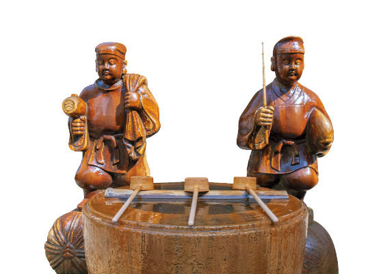 もうひとつぜひ立ち寄りたい場所が「亀戸 香取神社」。武功の神として崇められる経津主神を御祭神とし、源頼朝や徳川家康などの武将・武道家の篤い崇拝を受けてきたことから、現在はスポーツ振興の神として親しまれています。こちらは、藤原鎌足が東国下向の際、地名の由来のひとつといわれる亀形の島に船を寄せ、旅の安泰を祈ったことが創建の起因と伝わる、天智天皇4(665)年創建の古社。亀戸名物・江戸伝統野菜の亀戸大根の石碑や、地名のひとつと考えられている「亀が井戸」の水を引く甕と大国神・恵比寿神の像など、境内には数々の見どころが点在しています。
