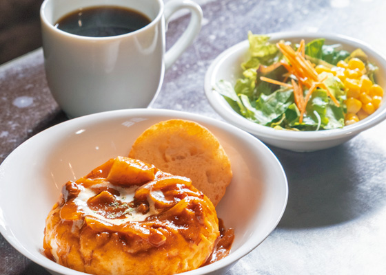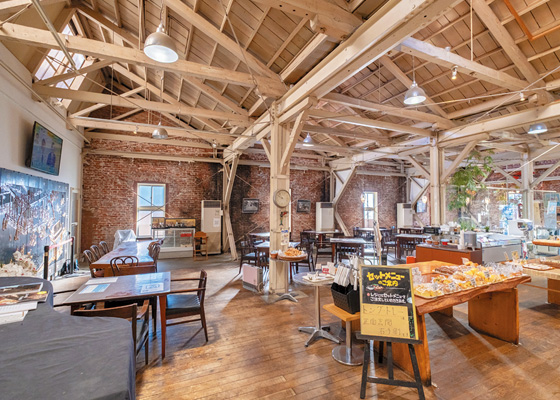 大正9(1920)年に建てられた、イギリス積みのレンガ造りの建物を使ったベーカリー。取り壊しされる予定だったものの、残したいという店主がこの地に移り生まれ変わらせました。ノコギリ屋根状の桐生らしいパンなど多彩な商品がそろうなか、イートインではビーフシチューパンが人気。並んだパンを選んで店内で食べることもできます。
