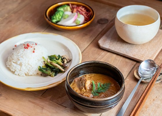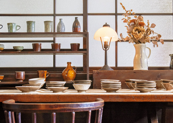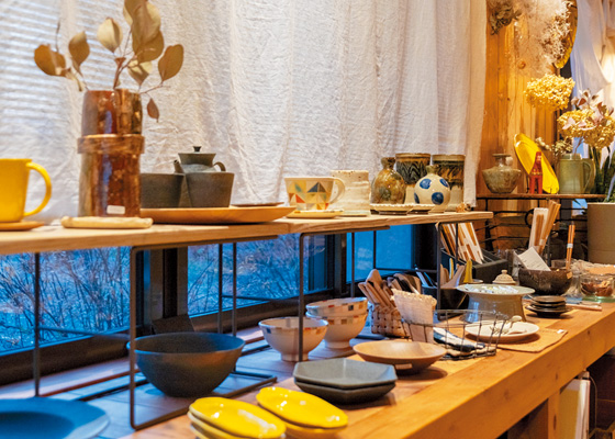西桐生駅のすぐ近くに2018年にオープンしたお店。みずからも陶芸活動を行っていた店主が、岐阜県・美濃焼など全国からセレクトした陶芸作品を販売しています。カフェも併設していて、おいしくて健康的なものをテーマにしたメニューをラインナップ。週替わりのカレーのほか、独自にブレンドしたハーブティーが人気です。