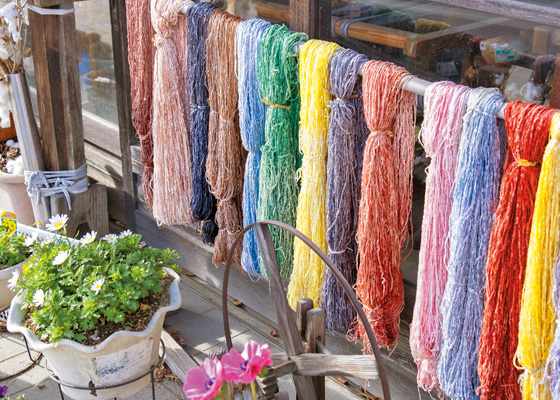 桐生の織物を深く知るなら、桐生新町を離れて「織物参考館“紫”」へ。消えつつある古い染織技術などを知ることができるほか、染色や手織り体験もできて、織物づくしの時間を過ごせます。なかでも桐生織を使ったお守りづくり体験が人気です。