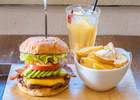 本町通りの1本裏路地にある「Ju the burger」は、全国のハンバーガー店が味を競うJAPAN BURGER CHAMPIONSHIPで2年連続で2位を獲得した名店。メニューごとにハーモニーを重視したというハンバーガーを味わうことができます。