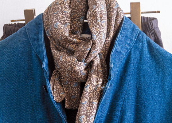 1.すべて手作りで生み出される、市松ブランドの一点ものの商品 2.ベルーリア別注のストールなども販売 3.陶器や生活雑貨、衣服などがそろうレトロモダンな店内 4.イグサを使った多彩な商品をつくる須浪亨商店のいかご革巻特浅1万5400円