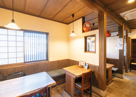 明治20(1887)年に創業したうどん・そばのお店。一般的な太さの麺もあるなか、ひもかわうどんの名店として週末には行列ができるほど人気です。もっちりとした食感と小麦の風味が魅力で、初めてひもかわうどんを食べるなら、冷たい麺に温かい汁のメニューがおすすめです。同じく群馬名物のソースカツ丼もあります。