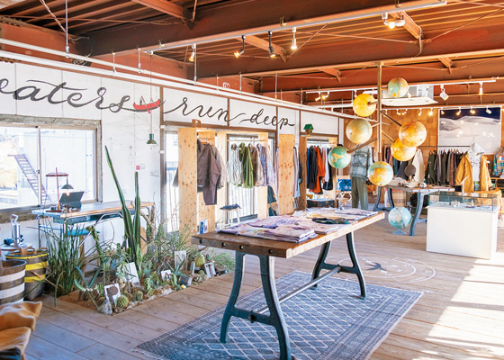 元鉄工所だった建物を使って2017年にオープン。1階はGASTERROと名付けられたレストランが入り、併設の醸造所でつくられたクラフトビールやフードメニューが楽しめます。2階は超軽量のウルトラライトギアや生活雑貨、厳選した加工食品などを販売。見晴らしのいいテラスのある3階は、ファッションアイテムがそろっています。