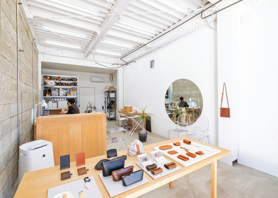 本町通り沿いに2019年にオープンした革製品の工房&ショップ。おもにイタリアの上質な牛ヌメ革を使った革小物は、すべての工程を手作業で行っています。たとえばカード入れは、紐を引っ張るとすぐにカードが取り出せるなど、使いやすさを追求した設計が魅力です。使い込むうちに色合いが変化し、愛着が湧く一品をぜひ。