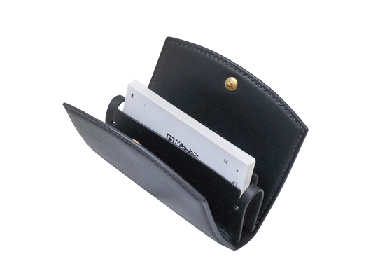 1.商品が手前にディスプレイされた工房兼ショップ 2.カードケース1万4300円 3.1枚ずつ取り出しやすいビジネスカードケース2万2000円 4.お店を代表する商品のミニウォレット2万2000円 5.カスタムキーホルダー8800円