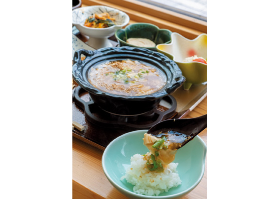 湯波の製造元が2020年に開いた湯波料理専門店。自家製湯波や豆乳を使った、多彩な料理やデザートがそろっています。おすすめは、中華風のあんかけスープ湯波がメインのとろっとゆばのスープごはん。柚子胡椒のちょっとした辛さとあんかけで、体の芯まで温まります。自家製の冷凍湯波も購入できます。