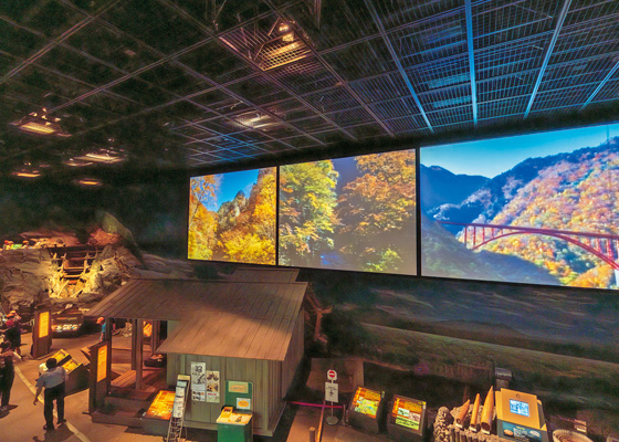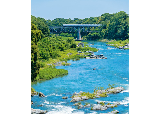 最寄り駅は、寄居駅の2つ手前の鉢形駅。日本最大級の水車「大水車」が目を引く存在ですが、なかでも屋外に展示されている「荒川大模型173」は必見。源流から河口までの川の流れと流域の地形を1000分の1に縮尺した大型立体模型で、雀宮公園付近で秩父山系を抜け、徐々に広がる川幅とともに関東平野に流れ出る様子、江戸時代初期に行われた河川改修の跡、東京スカイツリー®東側を弓形に流れる様子などを俯瞰して知ることができます。近くには川岸へ近づくことができるかわせみ河原があり、清々しいさんぽが楽しめます。