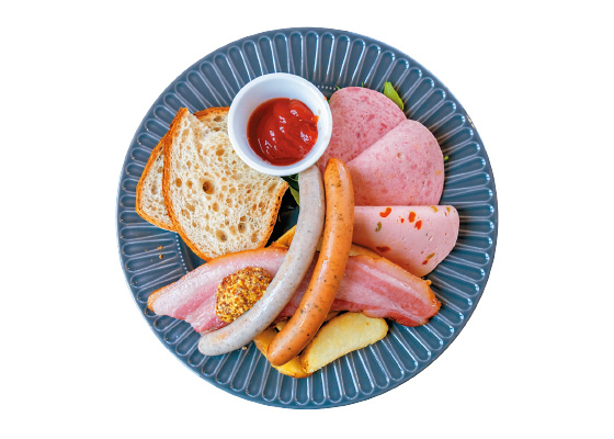 男衾(おぶすま)駅が最寄りの「手作りハム工房 バルツバイン」は、本場ドイツの国際コンテストで幾度も金賞を受賞した、自家飼育の豚肉を使ったハム&ソーセージの人気店。店頭で購入することもできますが、ベストな調理法で仕上げられたイートインメニューもあり、ランチにぴったりです。