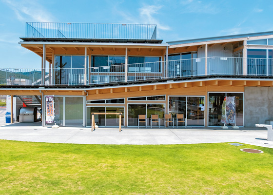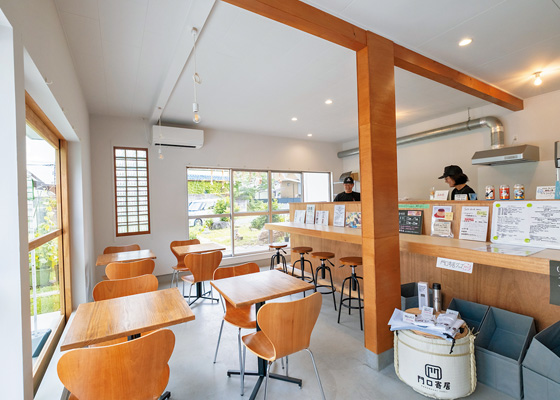 2025年1月オープンのお店。ランナーやサイクリスト、ハイカーも利用できるようにと、シャワールームが備わっているのが特徴。もちろんカフェ利用のみでもOKで、地元のブランド豚や卵、野菜などを使ったフードメニューが味わえます。日本各地の日本酒や町内の工場で製造されたクラフトビールなどドリンクも充実。