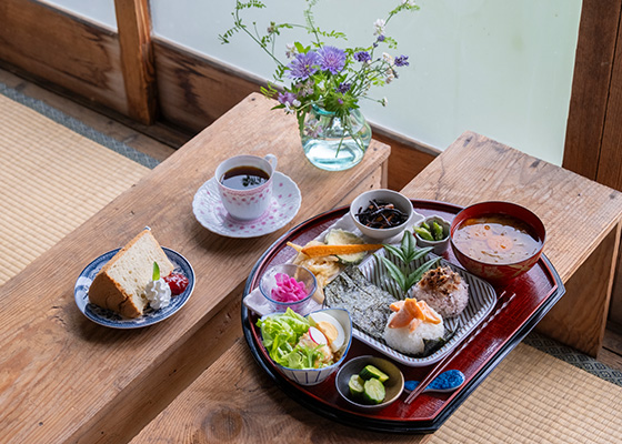 周囲に里山風景が広がる、秩父鉄道波久礼駅近くにあるお店。築100年を超える古民家を改装した店内は、木の温もりを感じながらお庭に広がる緑にも癒される、長居したくなる空間です。旬の野菜をふんだんに使った野菜をたっぷりと味わえるランチメニューは、体にも心にもやさしい味わいです。