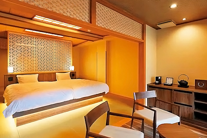 鬼怒川温泉の渓谷沿いに立つ「栂の季」のなかでも、和モダンな唯一無二の客室で癒しの時間をお楽しみください。