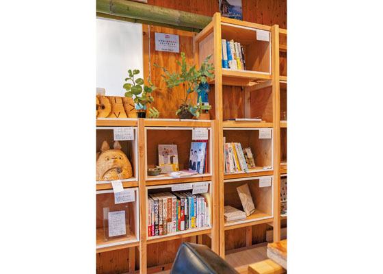 聞けば、1階の建築事務所が移った後、改装して「カンカンバコヤ」として2024年4月にリスタートさせたメンバーのお二人。「カンカンバコヤとは、約30㎝四方の四角い箱型の本箱を誰でも自由に借りられて、自分だけの本屋を持てる〝一箱本棚〟というスペースです。アート作品を置く方など、陳列内容は千差万別。街にかかわりのない方も、気軽に入れることを心がけています」