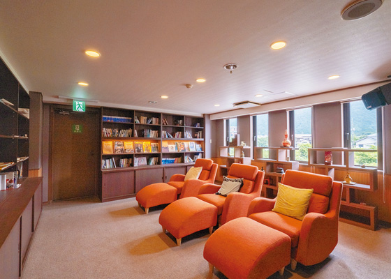 オリジナルブレンドの豆を使ったコーヒーが評判のラウンジやリラクゼーションサロン、ブックライブラリーもあります。