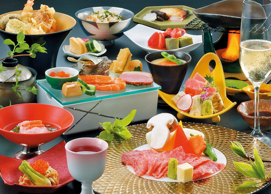 宿の大きな楽しみのひとつである夕食は、栃木県産の食材に加えて、特別ルートを生かして仕入れる千葉・南房総直送の魚介を使った品々が並ぶのも魅力。那須高原豚や地場野菜など、素材の味を生かす豆乳鍋が名物です。