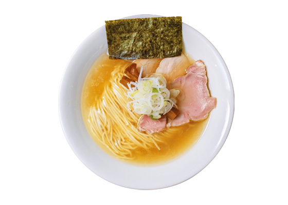 初めての来店なら、お店の特徴が感じられる定番の塩らぁめんがおすすめ。テーブルには本日のスープの出汁が記されたボードがあり、こだわりが感じられます。澄んだスープを口に運べば、すべての素材の角が取れたまろやかな口当たりでありながら、幾重にも複層的にうま味が押し寄せてくる濃厚な味わい。歯切れがよく、小麦の風味がいい麺との相性も絶妙です。