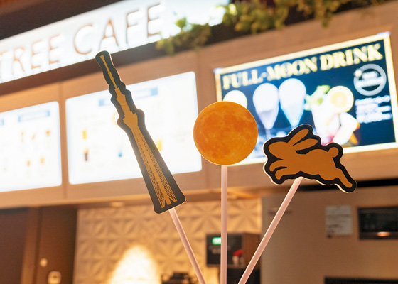 ドリンクを提供するSKYTREE CAFEではフォトプロップスも貸し出し