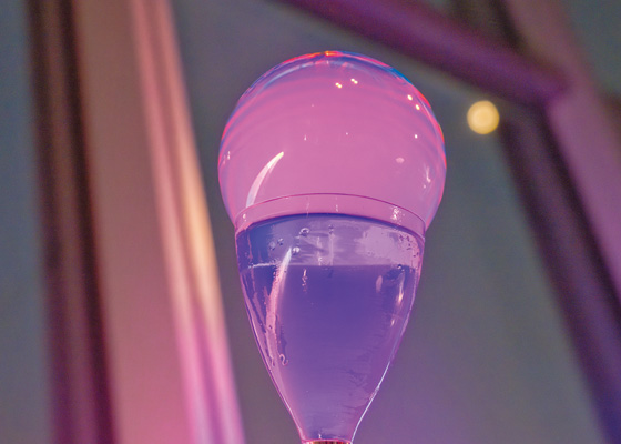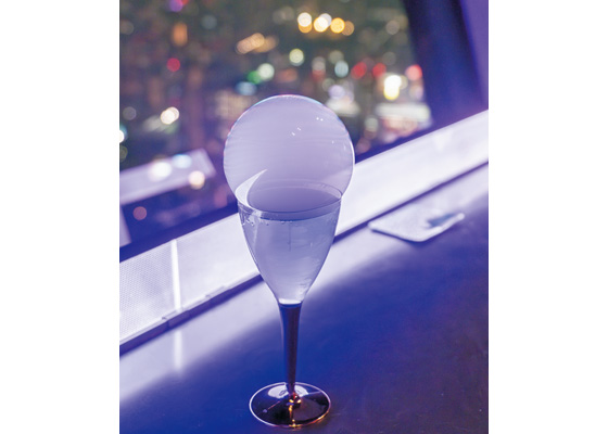 ドリンクはスカイツリーのライティング「粋」と「雅」をイメージしたアルコール2種と、同じく「幟」をイメージしたノンアルコール1種。なかでもアルコール2種は、グラスの上に満月のようなシャボンがのっていて、写真映えすると話題です。