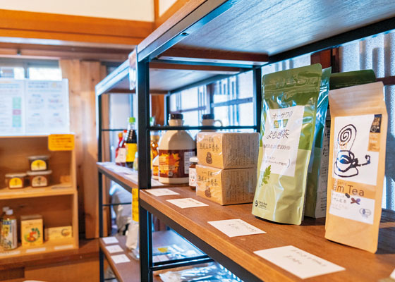 お会計をする部屋では、さまざまな健康食品や発酵食品などを販売していて、とくに舘内さんがおすすめしているミネラルが豊富な海洋深層水の商品も購入できます。屋外ではエシカルパークなどで栽培された新鮮野菜も販売しています。
