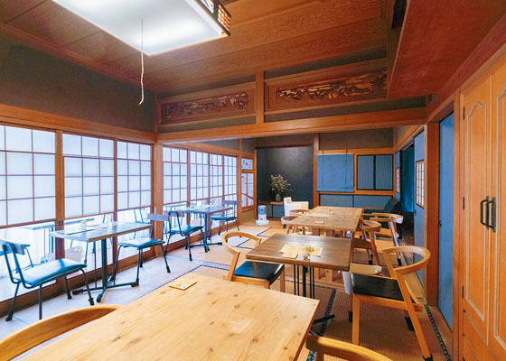 「リラックスできる空間にもこだわりました。立派な彫刻が施された欄間(らんま)をはじめ、上質でレトロなしつらえはそのままに残し、小さなお子様連れの方に居心地のいい小部屋も用意し、ペット同伴OKな土間のある別室も設けました。さまざまな人にとって居心地のいい場所にしたいという思いからです」
