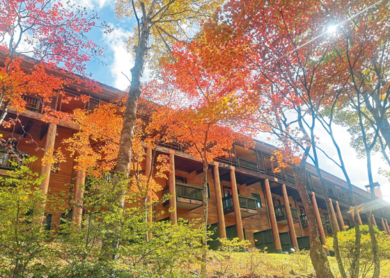 そんな中禅寺湖畔のなかでも、みやげ物店や宿などが集まる湖東端から離れた、さらに静かな場所に「中禅寺金谷ホテル」はあります。こちらは、現存する日本最古のリゾートクラシックホテルである東武日光駅近くの「日光金谷ホテル」の系列ホテル。木を多用した建物は、周囲に広がる自然の美しさを損なわないよう建てられた低層で横に長い設計で、ログハウスにいるような感覚を覚えるほどの温もりある空間です。「ウェルネスリゾート」をテーマにしているとあって、館内や敷地内にいるだけで心身が癒やされること間違いなしです。