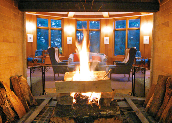 - 4.フロント奥のスペース。冬は火が入れられる暖炉も