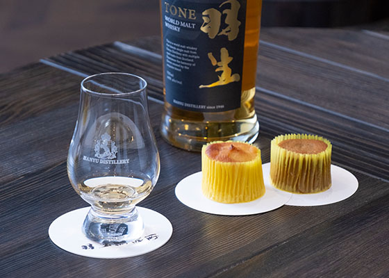 「TONE-トーン-羽生」は、この自社蒸留のシングルモルトウイスキーに、複数のスコットランド産モルトをブレンドして誕生した商品。それぞれバーボン樽で熟成させたスモーキーな香りが特徴のピート原酒と麦芽本来の甘い香りのノンピート原酒、さらにスコットランド産モルトとのバランスがすばらしく、まずはストレートで味わってみましょう。同じく東亜酒造が手掛けるウイスキー「ゴールデンホース武蔵」を使ったスイーツも2025年10月に発売され、ペアリングを楽しむのがおすすめです。