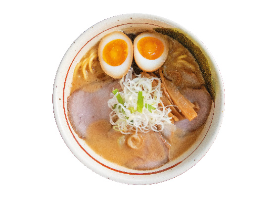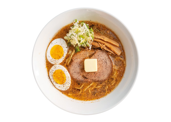 考案当初から月日を経て「どんどんシンプルになった」というこちらは、豚のゲンコツと鶏がらのうま味が生きたスープと魚介系の醤油だれ、そして胡麻ペーストの風味が相まった唯一無二の味。ひと口目は濃厚に感じるものの、上にのったシソやネギの風味も加わり、食べ進めるうちに和食のようなすっきりとした味わいに変化していきます。