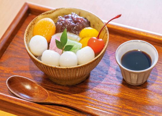 メインとなるのは、具だくさんのお汁を3種から1つ、お花の形がかわいいおむすび5種から2つか3つを選ぶ田ノ実プレート。いずれも全国各地の厳選した素材や伝統の味をアレンジしていて、ここだけの味わいを楽しむことができます。あんみつや吉野の葛餅などの甘味やドリンクメニューもあり、カフェ利用も可能です。