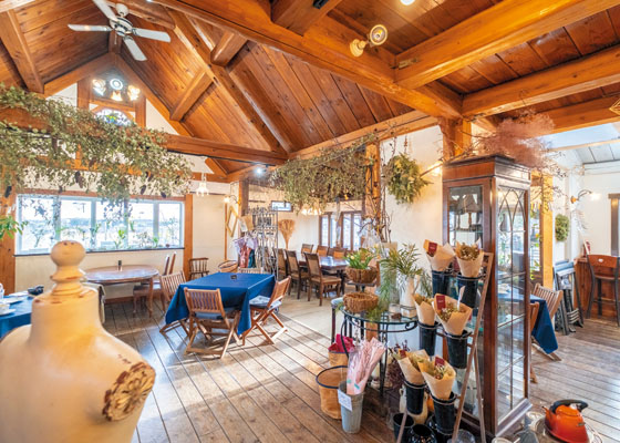 「東松山駅近くにあるフラワーショップ・アトリエカレンで行っていた、お花のレッスンや作品づくりのためのアトリエとして開いたのがこの場所です。店内を装飾し、お庭も手入れして、13年ほど前にカフェとしてオープンしました」