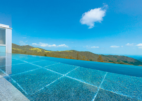 国立公園内の標高約1000mに位置し、すべての客室や館内各所から自然豊かな風景を眺められます。なかでも湯面が空に溶け込むようなインフィニティの展望露天風呂は、絶景のひと言。日光市市街に向かってゆるやかに傾斜するパノラマが、目の前に広がっていて、抜群の開放感とともに湯浴みができます。
