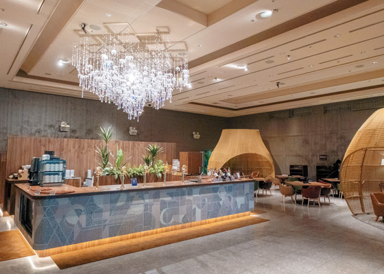 いちばんの特徴が、館内での食事やアルコールを含むドリンクがすべて宿泊料金に含まれている、オールインクルーシブを採用していること。多彩なウェルカムドリンクが用意されていることもあって、取材した日もチェックイン前から多くのゲストがロビーなどで飲み物を味わっていました。