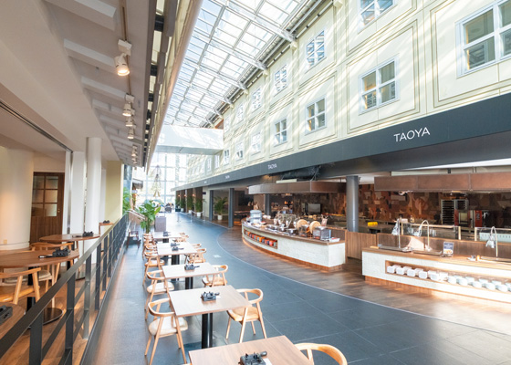 - 7.全長35mのライブキッチンが目を引くレストラン。まるで欧州のアーケードのよう