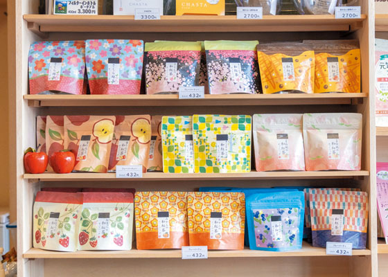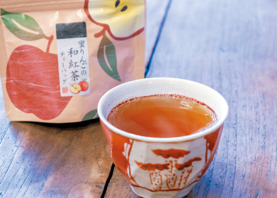 おづつみ園の社長・尾堤 宏さんは、スペーシア Xに乗車した際の感想をこう語ってくれました。こちらは、渋みの少ない静岡県産を中心とした国産和紅茶と、青森県産の蜜りんごのドライフルーツを合わせたオリジナル商品。カップを口に近づける前からりんごの豊かな香りが感じられて、口にすると甘みはなく、フレッシュなりんごと紅茶のハーモニーが絶妙な味わい。おづつみ園では山梨県産の白桃を合わせた、白桃の和紅茶も開発しました。