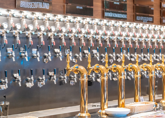 壁一面にビアタップが並ぶカウンター