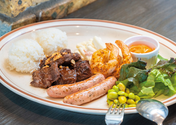 直火焼ステーキが看板メニューのフードも充実。ビールやホップの風味をプラスしたフライドチキンやビール衣のフィッシュ&チップスなど、ビールとの相性のいい品々がそろっています。ご飯も付いたワンプレートのランチもあり、お得なセットになっていておすすめです。
