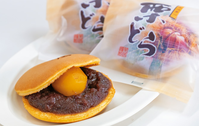 明治8(1875)年に和菓子店として創業し、現在はどら焼き専門店となったこちら。生地にたっぷりとはちみつを使っているのが特徴で、昔ながらの手作りの製法にこだわっています。これまで40を超える餡の商品を開発してきたとあって、多彩な創作どら焼きがそろうのも魅力。大きな栗が1粒入ったずっしり1粒栗入りのほか、あっぷるシナモンやコーヒー味など洋風の商品も人気です。