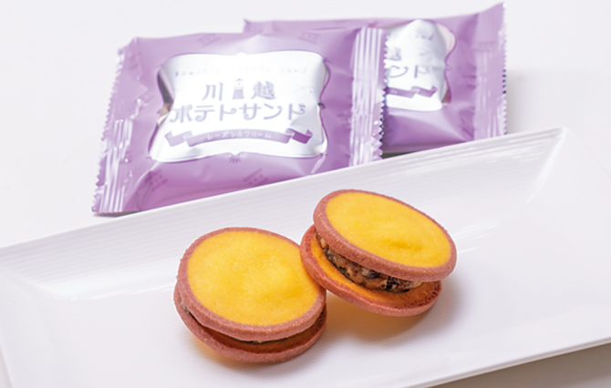 まず目を引くのが、実物のサツマイモのような姿。紫色に縁取られた黄色いクッキー生地は、サツマイモを輪切りにしたようです。サツマイモの風味がしっかりと感じられるのもポイント。そのクッキーでラムレーズンクリームをサンドしていて、リッチな味わいが魅力です。各店舗やオンラインで1個194円で購入できます。