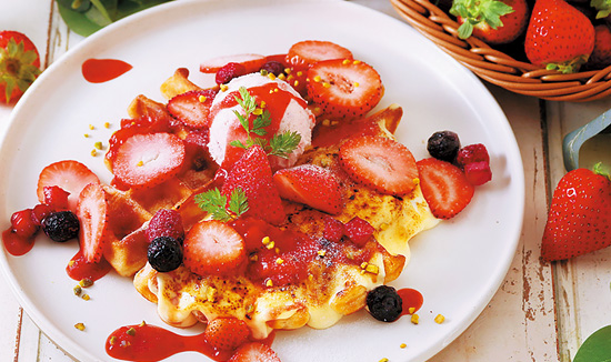 鮮やかないちごをふんだんに使った和・洋のスイーツ。店内で食べるもよし、お家で楽しむのもよし! その他にも、華やかでかわいい雑貨やアクセサリー、お子様も大人も楽しいワークショップも開催します。