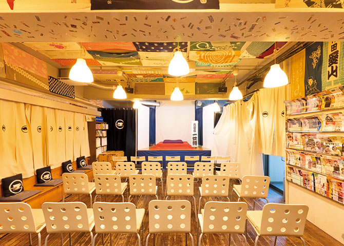 神保町交差点から歩いて30秒の場所にある、落語をテーマにしたカフェ。店内には高座と定員50名ほどの客席があり、一年を通して毎日のように落語会などさまざまな催しを開く。スケジュール、チケット予約方法などはHPを参照。