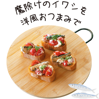 また、節分ではヒイラギの枝に焼いたイワシの頭を刺した「柊鰯(ひいらぎいわし)」を、魔除けに飾る風習も。鬼がイワシの臭気を嫌がるからといわれていますが、最近はあまり見かけませんね。そこで、イワシを使った料理や豆まきの福豆を使ったメニューで邪気を払い、新しい季節を迎えませんか。