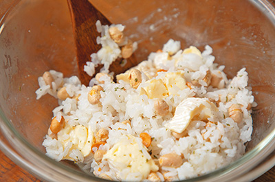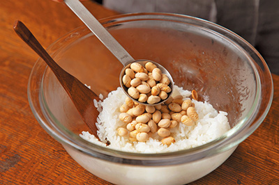 1. ご飯に福豆大さじ4を加え、軽く混ぜる。
