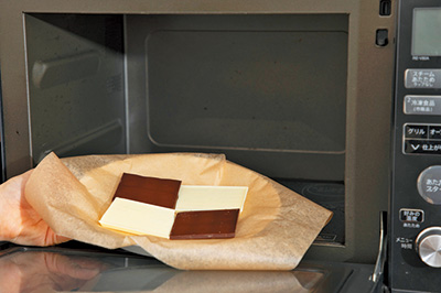 2. 電子レンジ500wで30秒加熱し、チョコレートがやわらかくなるまで様子を見ながら加熱を2~3回繰り返す。