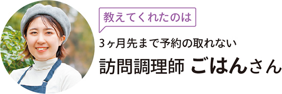 延べ6000軒以上のお宅を訪問し、各家庭の生活に寄り添った身体に優しい料理を提案。著書『訪問調理師ごはんさんのどんどんおかわりする子ども大好きレシピ78』『訪問調理師ごはんさんの野菜大好きレシピ』のほか、メディア出演も多数。