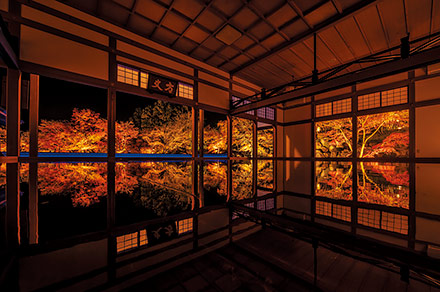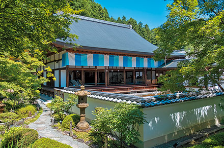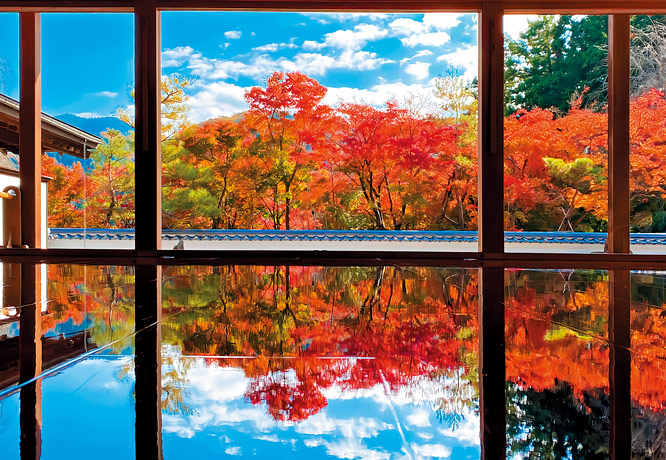 桐生地域の領主であった桐生正綱公により、室町時代の宝徳年間(1450年頃)に創建された臨済宗の禅寺。本堂の方丈では、境内のもみじが磨かれた床に映り込む、関東では希少な「リフレクション、床に映る世界」を見ることができます。秋のほか、新緑の春と3000個もの風鈴が境内を彩る夏も特別公開を実施。