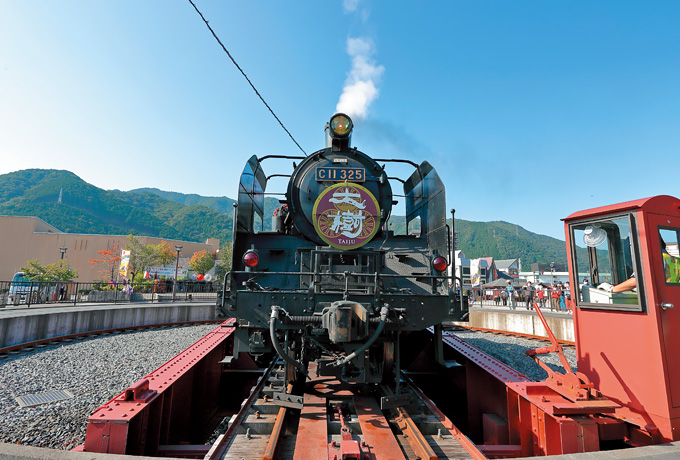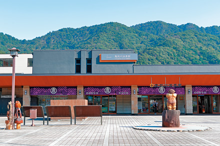 美しい渓谷沿いに宿が立ち並ぶ鬼怒川温泉の玄関口。浅草方面からの東武特急が停車するほか、下今市との間を運行しているSL大樹が停車します。また、SL大樹が向きを転換する転車台があり、転車時間になると多くの人でにぎわいます。駅前にある鬼の像「鬼怒太」は地域のシンボルです。