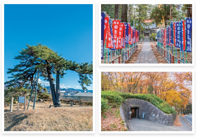 (写真左)県指定天然記念物・相生のマツ(相老駅から徒歩12分)