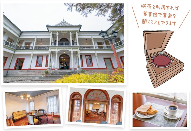 かつて「西の西陣、東の桐生」と呼ばれるほど、織物産業で栄えた桐生市。相老駅の東側の市中心部に繁栄ぶりをしのばせる歴史的な建物が数多く残されていますが、相老駅近くにも桐生明治館(A)があり、見どころのひとつとなっています。明治11(1878)年、前橋に建てられた医学校を併設する旧群馬県衛生所を移築したのがこちら。明治初期の典型的な擬洋風建築として、国の重要文化財に指定されています。往事の貴賓室などを見ることができますが、大きな特徴が、喫茶室を備えていること。文化財のなかでカフェタイムが過ごせるのは全国的にも少なく、魅力のひとつです。
